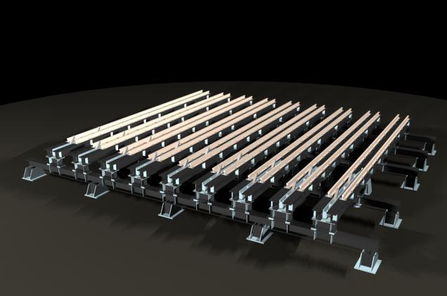 It has been successfully designed, manufactured, and installed a cooling table for rolled steel products with dimensions L14000 × W2300 × H850 mm.